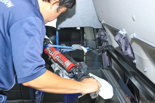 「トランポ」を活用すれば、バイクや荷物、同乗者と一緒にクルマ1台で一気に移動が可能ですが、まずバイクの安全な積み下ろし、確実な固定などには何が必要なのでしょうか?