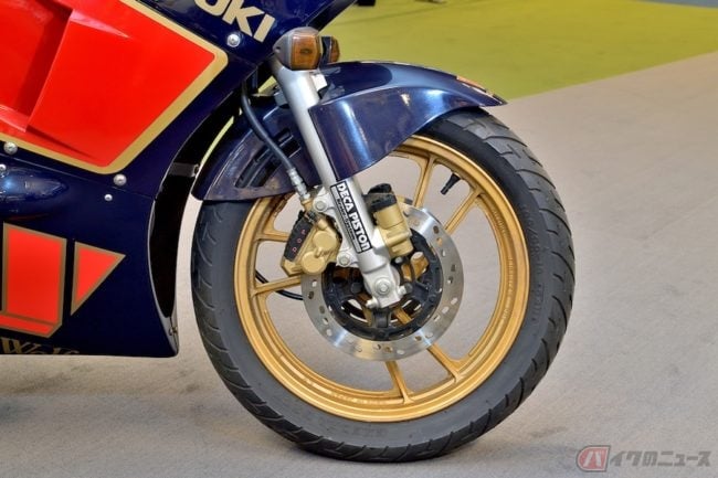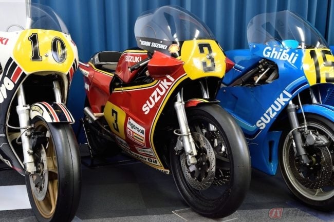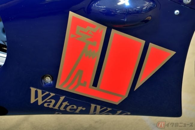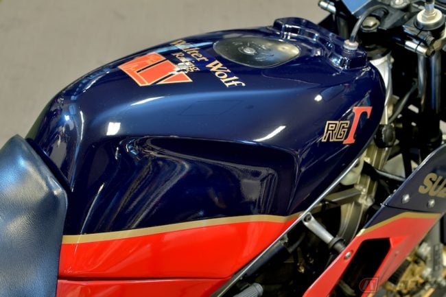 また、世界グランプリを戦っていたRGΓ500と同じスクエア4エンジンを搭載した市販車RG500Γ(1984:輸出仕様)は、スペシャルカラーとして「ウォルター・ウルフ」もRG250Γとともに設定されていました。RG500Γの輸出仕様車は95ps/9500rpmを発生させていました。