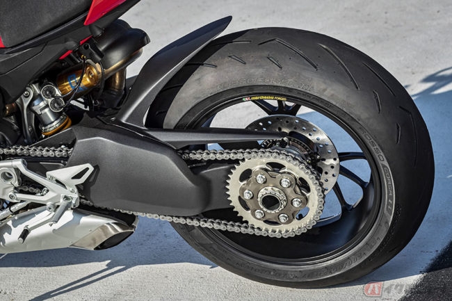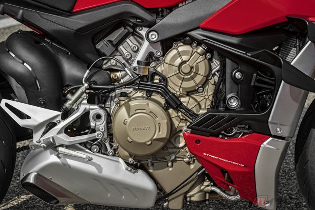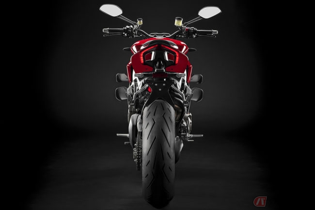 心臓部はパニガーレV4同様の排気量1103cc「デスモセディチ・ストラダーレ」エンジン(水冷90度V型4気筒)を搭載し、最新世代のエレクトロニクス・パッケージによって車体のあらゆる挙動を監視します。