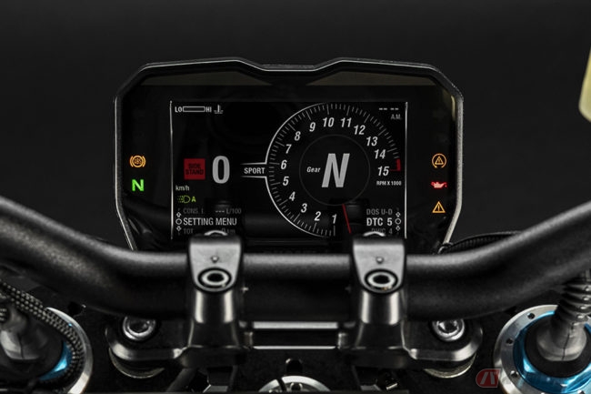 車両重量は178kg(パニガーレV4 S)、最高出力は208ps/12,750rpmです。ネイキッドモデルのエンジンとしてこのユニットは圧倒的なパワーを備えていますが、専用のマッピングが施されたことにより、日常ユースでの実用性や走る楽しさも同時に実現している、と言います。