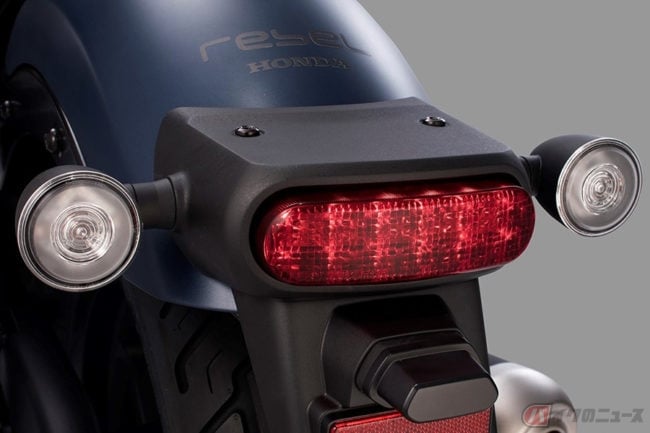 新型レブル500は、ナロースタイルのフレームボディやファットタイヤ、せり上がった燃料タンクなど、レブルならではの特徴的なスタイリングはそのまま、灯火類にLEDを採用し、より現代的な印象となっています。