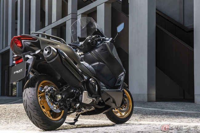 新型「TMAX」には、クルーズコントロールやグリップ/シートヒーター、ゴールドのフロントフォーク、調整式のリアサスペンションなどを備えた上級グレード「TMAX Tech MAX」も用意されるようです。