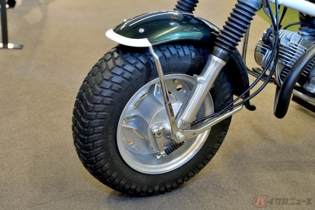 レジャーバイクとして生まれたバンバンには、一体式のエアポンプとエアゲージが車体にセットされており、レクタングルタイヤの空気圧を簡単に調節できました。また、ラフロード走行に最適の油圧ダンパー式フロントフォークやエンジンプロテクターを装備、オフロード環境下での使い勝手も考慮されていました。