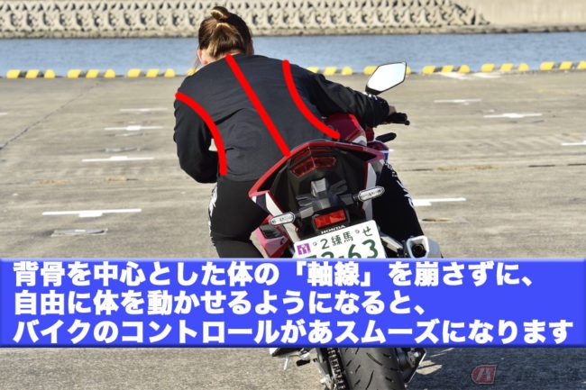 「こういった“ひねる動き”は、総合格闘技でもパンチやキックを出すときに大切になります。それに、グラウンド(寝技)に持ち込まれそうになったり、持ち込まれたりしたときに抜け出すときに体幹の強さは重要なんです。初めてバイクにまたがって、コーナリングのフォームを教えてもらいましたが、バイクでも脇腹を中心とした体幹部の使い方が重要なんだな、ということが実感できました」
