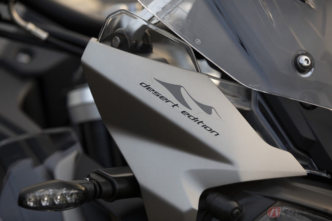 専用のDesert Editionグラフィックとサンドストームペイントを施すことで特別感を高めた同モデルは、他のTiger 1200と同じく141PSの最高出力を誇る3気筒エンジンを搭載。
