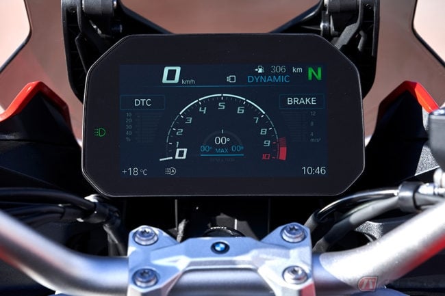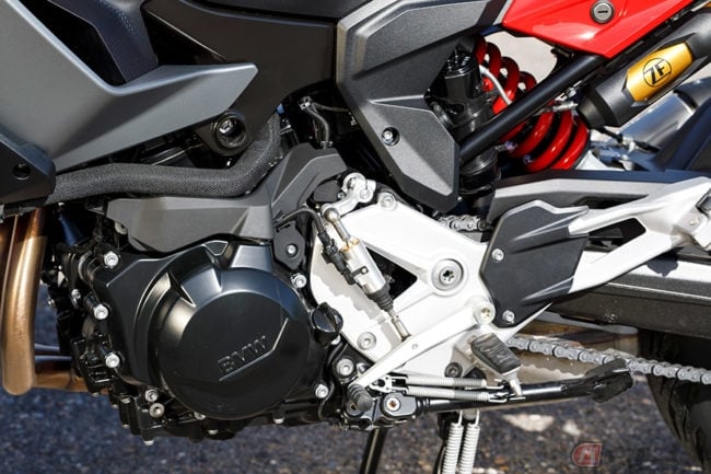 エンジンのフィーリングは、同型エンジンを搭載するF850GSとの比較ではボトムエンドトルクが増え、スムーズに感じます。ECU(エンジン・コントロール・ユニット)を含め細かなアップデイトがされた部分はさすが、早速伝わってきます。何より始動直後のエンジンノイズがなく、質感向上は間違いなしです。