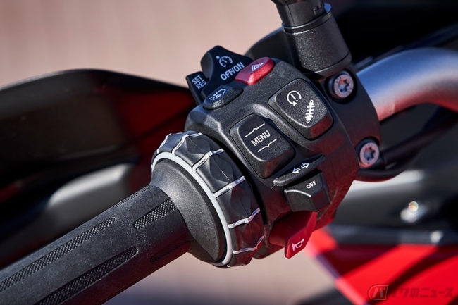 そのほかにも、滑りやすい路面でリアタイヤがアクセルオフの際にスリップを防止する「エンジン・ドラッグ・トルク・コントロール」も新採用されています。この電子制御デバイスは、アクセルをオフにした瞬間、グリップを失うような場合に威力を見せます。わずかにスロットルバルブを開けることで後輪の回転を維持し、グリップを失わないようにするのです。