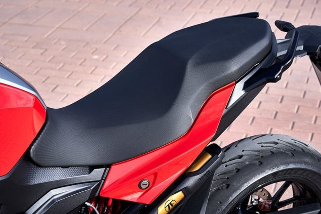 エンジンベースとなった並列2気筒エンジンを搭載するアドベンチャーモデル「F850GS」がそうであるように、燃料タンクはエンジン上、コンベンショナルな位置に搭載されてなおこの軽量感です(歴代「F」シリーズモデルはシート下に燃料タンクを配置していた)。
