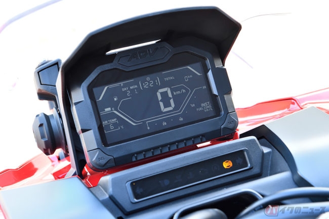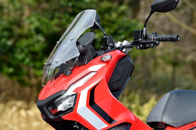 スクーターと言えば通勤快速ですが、ADV150はさらにアドベンチャー要素を強めています。たとえば、ワンタッチで高さ調整できる可変式ウインドスクリーンや、日除けも付いている多機能スピードメーターなどは、本格的ラリーレイドを思わせるもの。フルパニア仕様にして北海道など長距離ツーリングにも行きたいなどと妄想ははかどります。