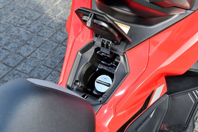 シート高は795mmと、PCX150よりも約30mmも高くなっていて、東京モーターショーで発表された展示車で“足着きインプレ”をしたときは、身長160cmで短足属の私(小林ゆき)としてはやや手ごわいシート高だと感じました。