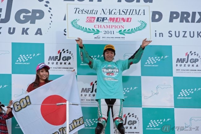 長島選手が頭角を現したのは2011年。4ストローク250ccモトクロッサーエンジンを載せたロードレース専用バイクで戦う、全日本ロードレース選手権GP-MONOクラスでシリーズチャンピオンを獲得します。