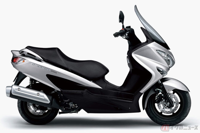 また、2017年には「スカイウェイブ400」が全面改良され、新型ラグジュアリースクーターとして「バーグマン400 ABS」が発売されました。これでスズキの大型スクーターはグローバルブランドである「バーグマン」に統一されます。