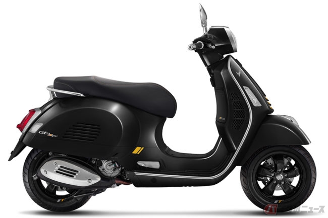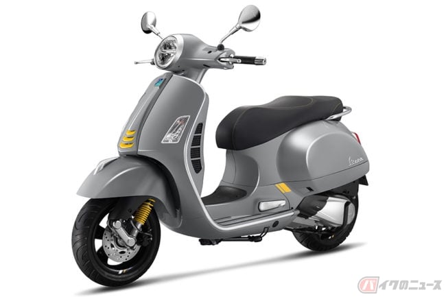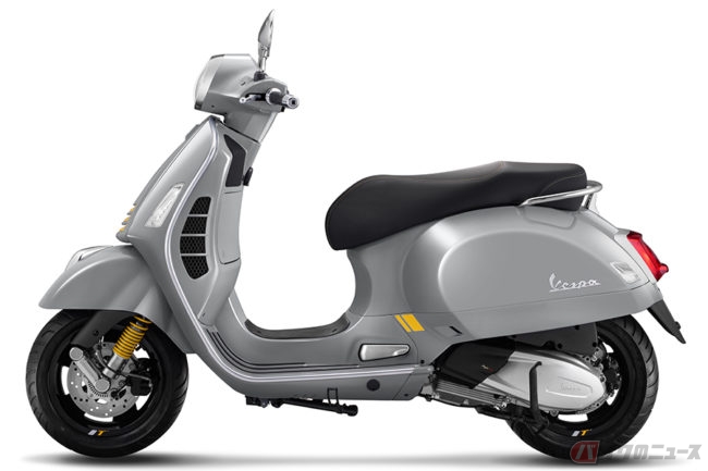 ベスパ最新のスポーツモデル「GTSスーパーテック300」の価格(消費税10%込み)は77万円、カラーバリエーションは「グレー」と「バルカンブラック」の2色設定です。製造国はベトナムです。