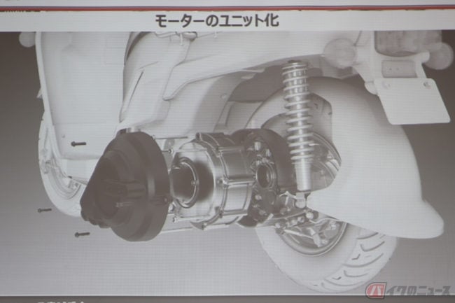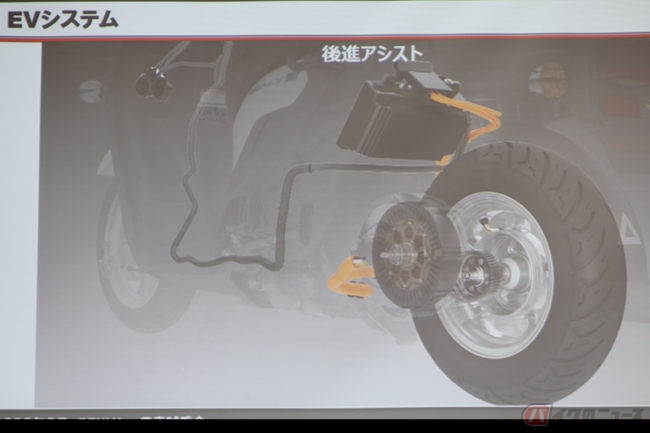 このシステムは既存のガソリン車、ベンリィやスーパーカブ、ジャイロ系にも対応可能で、ビジネスバイクの今後の発展に欠かせない要素のひとつとなってくるのは間違いないでしょう。