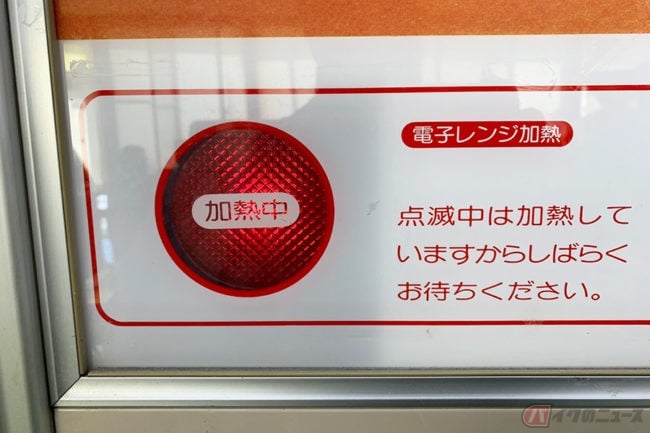 これを食すことにします。電子レンジ加熱中は赤いランプが点滅します。なぜか一気に昭和へ戻ったこの感覚は、バイクで来たから、ということもあると思います。穏やかな時間を待つと、それは出てきました。