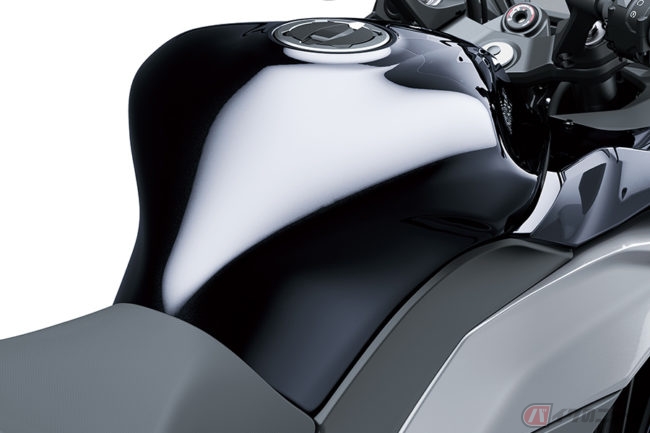 ウインドプロテクション性能を高めたシールド、快適性を高めたフロントシート、Bluetoothでつながるスマートフォン接続機能、ETC2.0車載器キット/グリップヒーター/DC電源ソケットなどを標準搭載することでツアラーとしての利便性をを高めています。