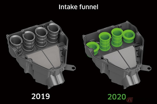 従来モデルではマフラーが左右にそれぞれ2本ずつ振り分けられていましたが、2020年モデルでは1本に集約することでよりダイナミックでスポーティなスタイリングとされました。