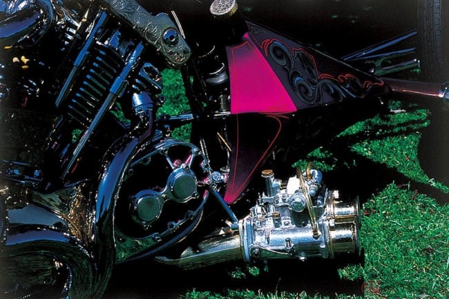 たとえばこうした装飾性の高い「ショー・カスタム」を前に『走る、走らない』という論争がしばしば起こることもありますが、すべてを『性能』だけで評価することが出来ないという部分もチョッパーというカスタム・ジャンルの特徴です。