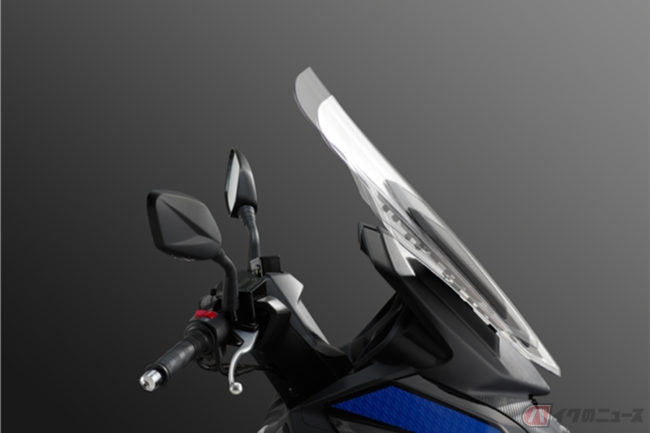 その他、視認性に優れたメーターやライダーの体格に合わせて 2 段階に調整が可能なウインドスクリーン、充電用のUSBポートなどを備えたJOYMAX Z250の価格(消費税別)45万円となっていますが、現状、導入時期については未定となっています。
