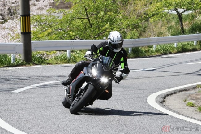 実際、市街地では軽い車体と4000rpm以下でもキビキビ走るトルク感により、走りが軽快です。前傾姿勢ながらしっかり前方視界が取りやすいレベルなので、デイリーユースにも適するでしょう。