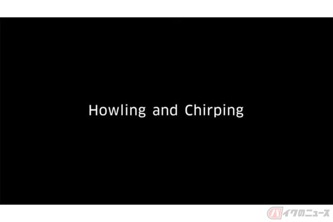 さて、動画を開始すると黒バックに浮かび上がるのは「Howling and Chirping」の文字です。「ハウリング」は何か大きな音だ、ということは何となくわかるのですが、「チャーピング」は聞き慣れない単語です。辞書で調べると、鳥の鳴き声とか光学用語の波長の一種とのこと。