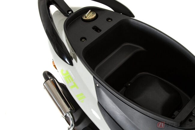 最高出力2.9kw(約3.9ps)を発揮する空冷4ストロークの単気筒エンジンを搭載するJET IIは、車重85kgと軽量に設計された原付スクーターです。