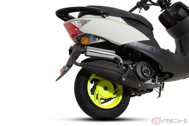 前後10インチのホイールサイズを採用することで、機敏な走行を可能にした同モデルは、オープンスタイルのハンドルバーや個性的な形状のサイレンサー、蛍光色を採用することでスポーティな印象とされています。