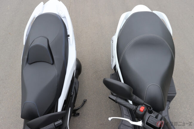 また、シート高は「400」が755mm、「200」が735mmとなっていますが、シート面積においては前後とも200のほうが圧倒的に広く、両車ともに左右の足元付近を絞り込んだカットフロアボードを採用し、足つき性が高められています。