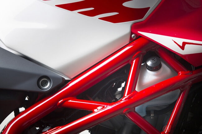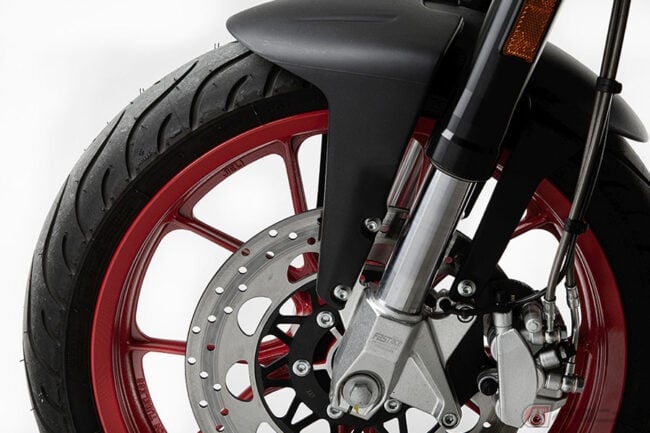 小排気量車でありながらデザイン性に優れた外観が与えられたヴァレーゼ125では、ひと際目をひく赤く塗り上げられたトレリスフレームを採用。倒立式のフロントフォークやモノクロス・リアサスペンションの採用により、スポーティな乗り味を実現しています。