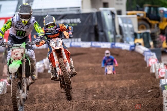 雨天のため各クラス1回の予選が行われ、モンスターエナジー・カワサキのE・トマック選手は450SXクラスで唯一57秒台をマークしてポールポジションを獲得しました。