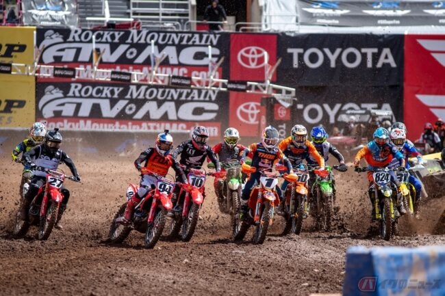 AMAスーパークロス第13戦は、前2戦と同じくユタ州ソルトレイクシティのライス・エクルス・スタジアムで開催され、第12戦から気温が下がったことや大雨の影響でコースコンディションが悪化するなど、レースに大幅な変更が加えられました。