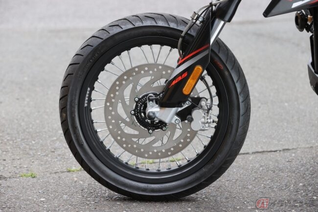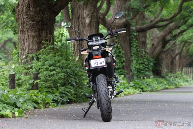 ただ1点気になったのは、本格モタード仕様としての走行性能にこだわった故か、シートが長くてツルツルしているため、急ブレーキなどのとっさの場合に体が前方に滑ってしまい、少し不安定に感じてしまうこと。