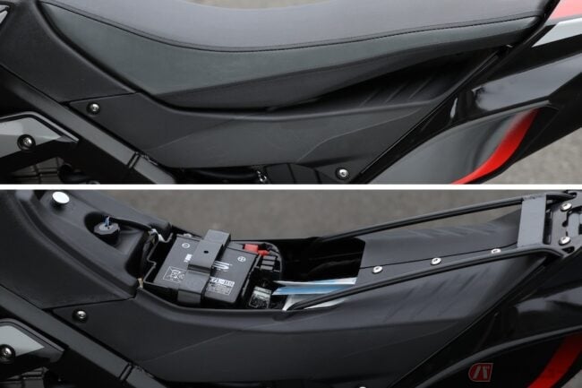 しかし、この縦に長く滑りやすいシート形状は、ベテランモタードライダーでも、ライディングを楽しみ尽くせる本格仕様! シート上で前後に体を動かしやすいように、考えられているのです。