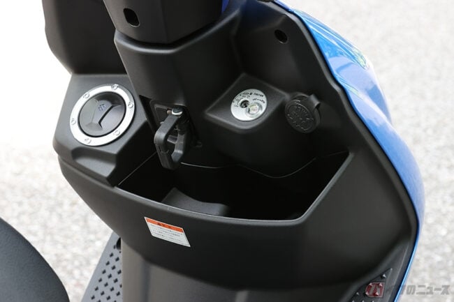 フロントのインナーラックやシート下のトランクも「アドレス125」より広く、フルフェイスヘルメット、プラスアルファの大容量を確保。積載力の高さは大きなセールスポイントで、さらにスマートフォン等を充電できるUSBソケットも装備しています。
