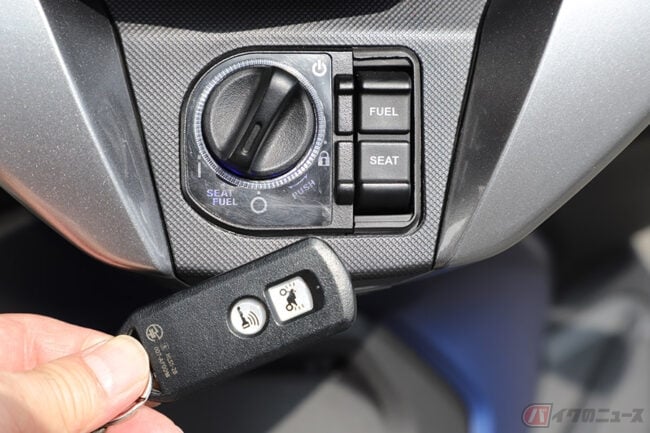 エンジンをかけようとして驚いたのが、キーの穴がないこと。そう、クルマでは当たり前になっているスマートキーが採用されているのです。乗り降りのたびにキーをポケットから出し入れしなくても済むのは本当に便利です。