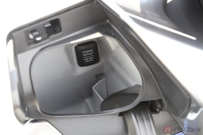 また、フロントのインナーボックス内には12Vのアクセサリーソケットを標準装備しているので、スマートフォンの充電もできるのは嬉しいですね。時代のニーズにしっかり応えて進化しているのがわかります。