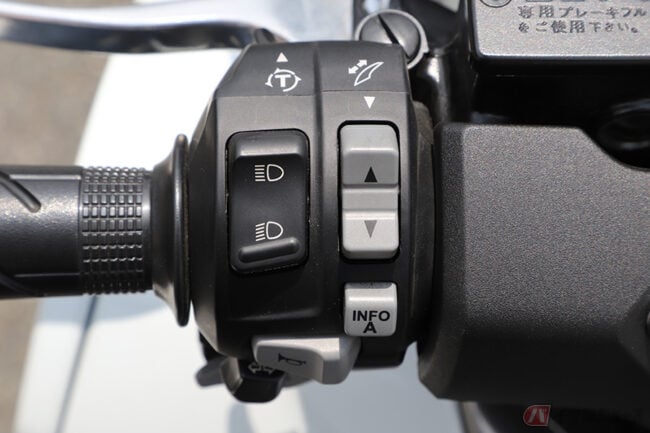このフォルツァは電動スクリーンを装備しており、スイッチひとつで高さ調整が可能です。また、ホンダのスクーターでは初となるトラクションコントロールも装備しているため、滑りやすい状況でもより安全に走ることができます。