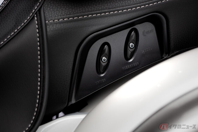 今回あらたに発表したClimaCommandクラシックシートは、「ライダーから熱を逃がす独自のサーモエレクトリックモジュール」「熱電モジュールを冷却するための特許出願中のダクトシステム」「優れた快適性を保ちながら、冷暖房の配分を最適化する高導電性・柔軟性素材Graphene(グラフェン)」の3つの要素を備えたもので、ライダーと同乗者に暖房と冷房の両方を提供するものです。
