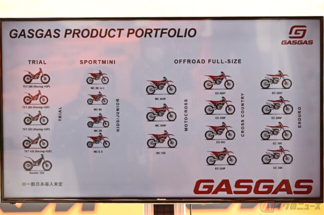 日本ではトライアルモデルの発売を皮切りに、将来的にはエンデューロモデル、クロスカントリーモデル、モトクロスモデル、スポーツミニモデルへとラインアップを拡充していく予定とのことです。
