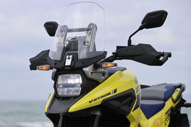 またハンドリングも特徴的で、郊外のツーリング路や高速道路を一定のスロットル開度で流すような場面では、カーブに対して車体はゆったりとしたハンドリングで対応し、ここでもライダーが積極的なコントロールで、車体を寝かす速度を早めるとシャキっと反応してくれます。鋭いハンドリングではなく、V-STROMというアドベンチャーバイクをワインディングで果敢にライディングする、という意思に応えるタイプです。コーナリングへの手応えをあと少し軽くすると、さらに楽しめるかも知れません。
