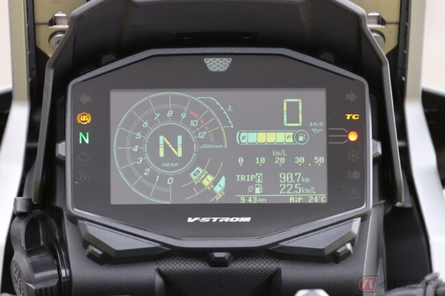 もちろん、スポークホイールもそのひとつ。標準モデルの「Vストローム1050」比でプラス8.8万円の価格は高いですが、正直、欲しい装備だらけ。