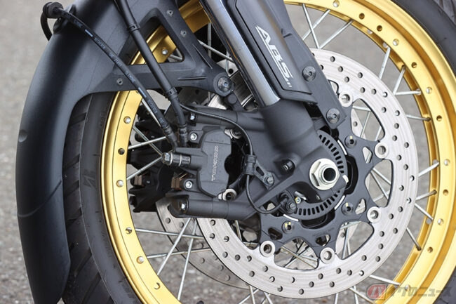 前後のブレーキも上質なチューニングです。フロントは鋭さよりもコントロール性が印象的。リアは低速走行からツーリング時、おそらくタンデム時にも幅広くライダーの減速をアシストするタイプです。また、荷重や減速度によって前後ブレーキの配分を調整してくれる機能もあり、長期、長距離でもライダーをしっかりアシストしてくれるはず。