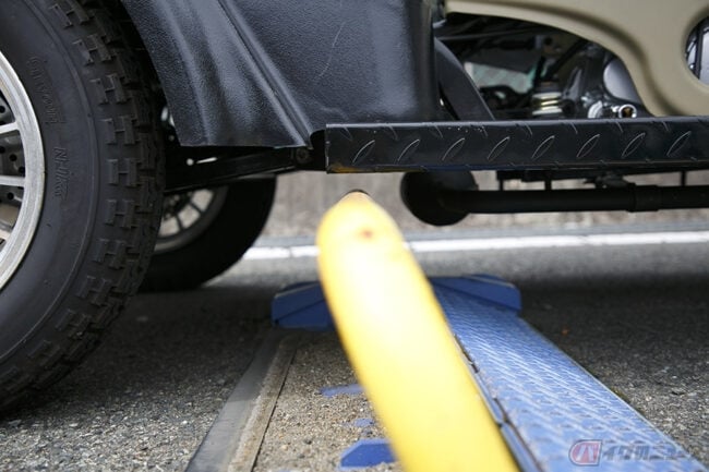 結果、車体より約1インチほどのクリアランスでロック板が上がりました。これでお出かけ先の駐車も安心です。駐車時のスタイリングもなんだかポップで可愛いです。