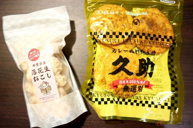 さらに、バイクでのお土産にも最適な、かさばらないサイズのお菓子も注目です。地元の土産品を中心に取り揃えるショッピングコーナー『旬の庭』には、全国一の生産量を誇る、千葉ならではの落花生が並びます。中でもキャラメルで包んだスイートなピーナッツは、食べはじめたら手が止まらないハマる味です。