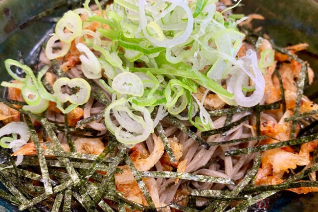 実際に立ち寄って食した「揚げ桜えび入り冷やしぶっかけそば」(580円)は、香ばしい桜えびとネギとノリが冷たいそばにマッチしていて、とても美味しくいただけました。とくに暑い日など、揚げ物ガッツリ系はちょっと重い気分のときはおススメです。サイドメニューに「ミニしらすご飯」(310円)も添えたところ、大根おろしのさっぱりとした風味に満足度マックスです。