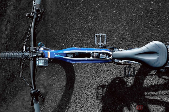 またダウンチューブはバッテリー(マルチロケーションバッテリー36V-13.1Ah/3.0kg)を2本の閉断面のチューブで挟み込むレイアウトとすることで適正なフレーム剛性の確保、ハードな路面における優れた走行安定性と旋回性能を発揮します。