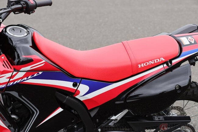 足つきで選ぶ「Type LD」(ローダウン仕様)ですが、お店に標準車高モデル「CRF250 RALLY」があれば、一度跨がってみることをおすすめします。ただし、しっかり足まわりがこなれているのが条件です。