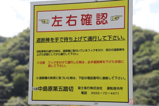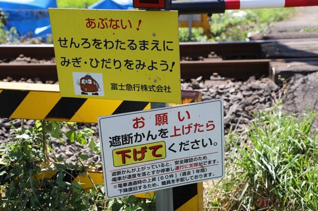 もともと富士急行の第4種踏切に遮断棒はありませんでしたが、事故防止の観点から横断前に一旦立ち止まり、安全を確認してもらうために2015年から設置が開始されたそうです。