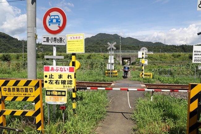 全国的にもレアな存在の「手動紅白遮断棒付き第4種踏切」、富士山ツーリングの際に、ちょっと寄り道して探してみてはいかがでしょうか(くれぐれも眺める程度に)。