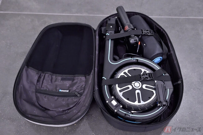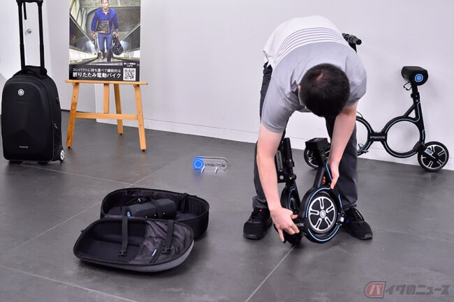 ボディの中にホイールを畳んで収納し、バッグに収まるサイズになるスマサークルS1は、2017年ごろにアイディアが出たもので、当時ネット上に情報が流れた際に実現は不可能だねと言われていました。